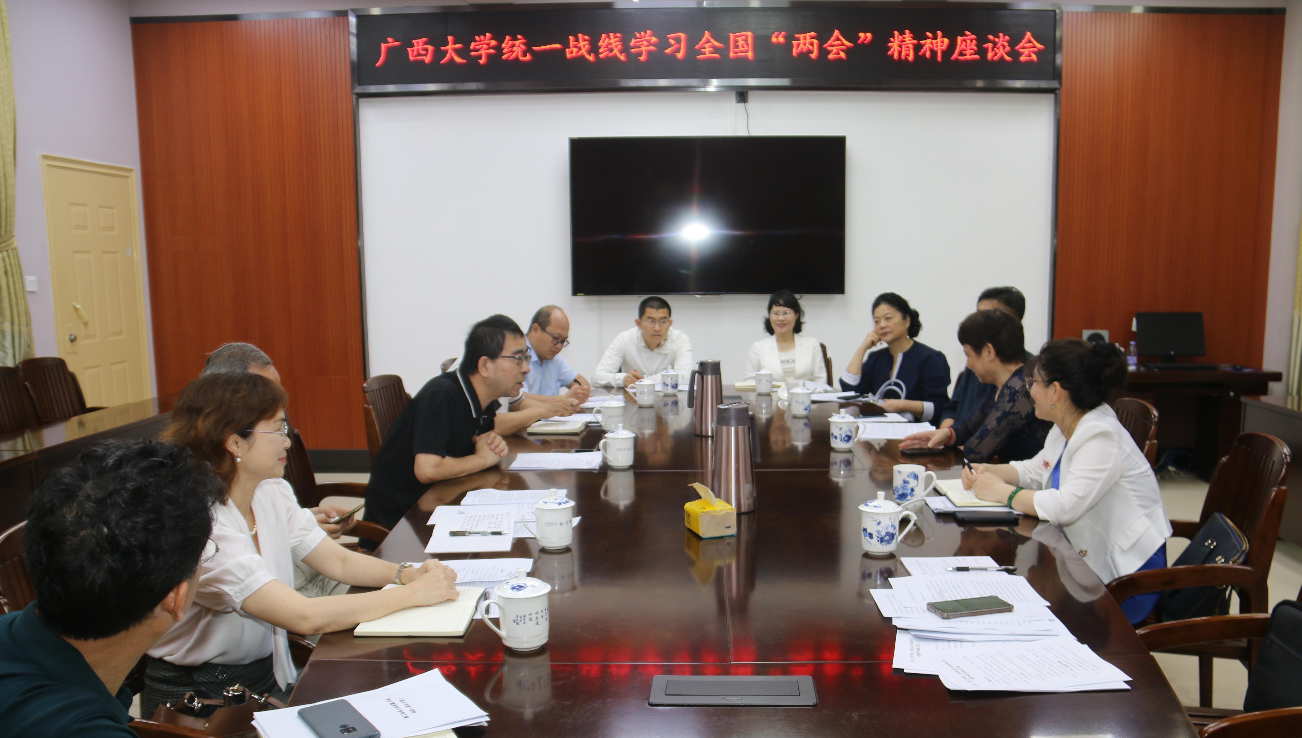自治区政协委员、民革beats365(中国区)-唯一官方网站基层委员会主委、农学院副教授覃宝祥,民盟beats365(中国区)-唯一官方网站基层委员会副主委、国际学院教师王海峰,民建beats365(中国区)-唯一官方网站基层委员主委、艺术学院院长胡红一,民进beats365(中国区)-唯一官方网站总支部主委、行健文理学院外语教研部部长覃玉荣,农工党beats365(中国区)-唯一官方网站基层委员会主委、生命科学与技术学院教授姜伯乐,致公党beats365(中国区)-唯一官方网站基层委员会主委、生命科学与技术学院副研究员李楠,自治区人大代表、九三学社beats365(中国区)-唯一官方网站基层委员会主委、校法律事务办公室主任李晖,台胞台属联谊会主席、图书馆馆长王承就,自治区人大代表、归侨侨眷联谊会主席、外国语学院副院长陈碧兰,留学人员联谊会秘书长彭炫等同志参加了座谈会并结合自身教学科研工作谈了学习体会。