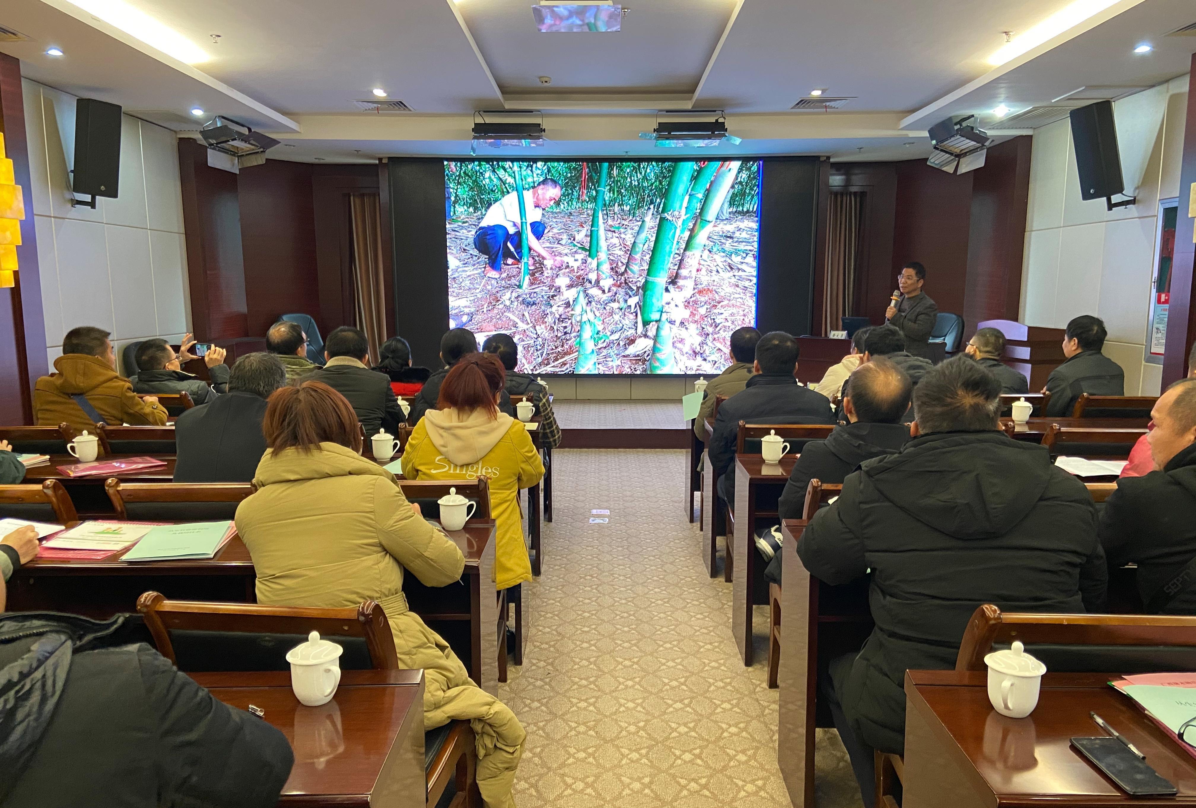 12月16-17日,黄大勇到崇左市开展技术服务。为崇左市各县区林业技术骨干、竹苗培育基地技术工人、竹林种植大户等60名村民进行了纸浆竹林培育技术培训,传授纸浆竹种选育、育苗方法、丰产技术及病虫害防治等。到扶绥渠旧竹苗繁育基地现场讲解种苗鉴别方法、育苗要点、造林方法等。并将自己编写的《竹子资源及其栽培技术》向村民免费发放60余本,为农村脱贫后的乡村振兴提供林业技术服务。