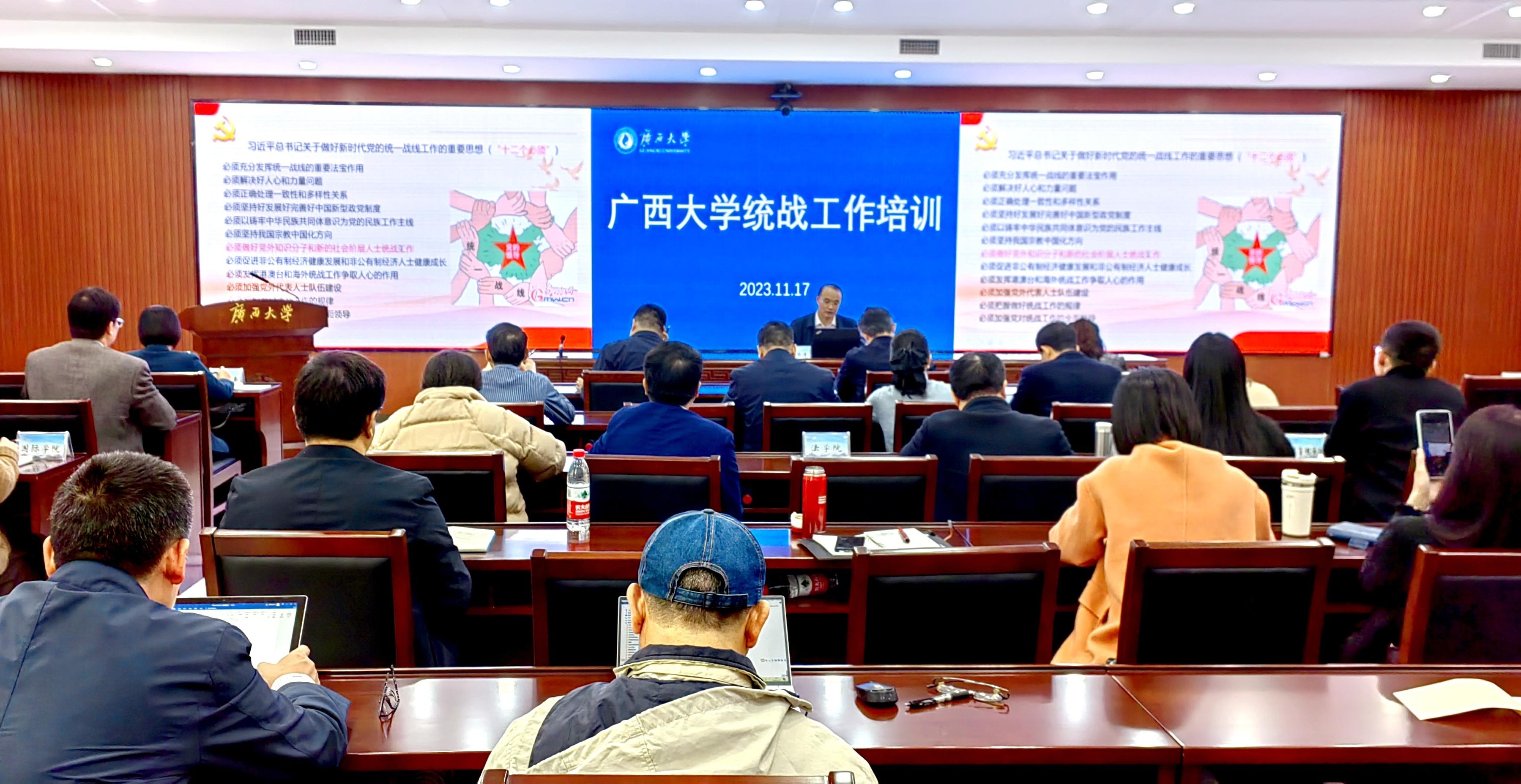 马少健希望大家通过这次培训,进一步提高政治站位,牢牢把握新时代爱国统一战线的历史方位和重要使命,不断凝聚共识、凝聚人心、凝聚智慧、凝聚力量。持续压紧压实工作责任,以beats365(中国区)-唯一官方网站“学术统战”为抓手,创造性地把各项工作落到实处。健全和完善学校党委统一领导、统战部牵头协调、有关方面各负其责的大统战工作格局,以大团结大联合凝聚起全校师生共同奋斗的力量,为建设牢牢扎根八桂大地的中国特色“双一流”大学提供坚实政治保障。