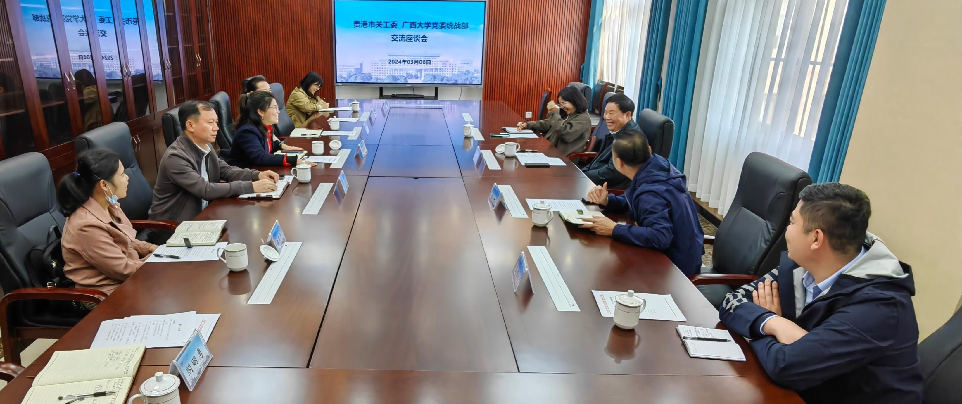 3月6日下午,贵港市关工委执行主任、老年大学校长,市政协原主席廖毅民一行到我校开展合作交流。校党委常委、校长助理、统战部部长姚作芳参加交流并主持座谈会。