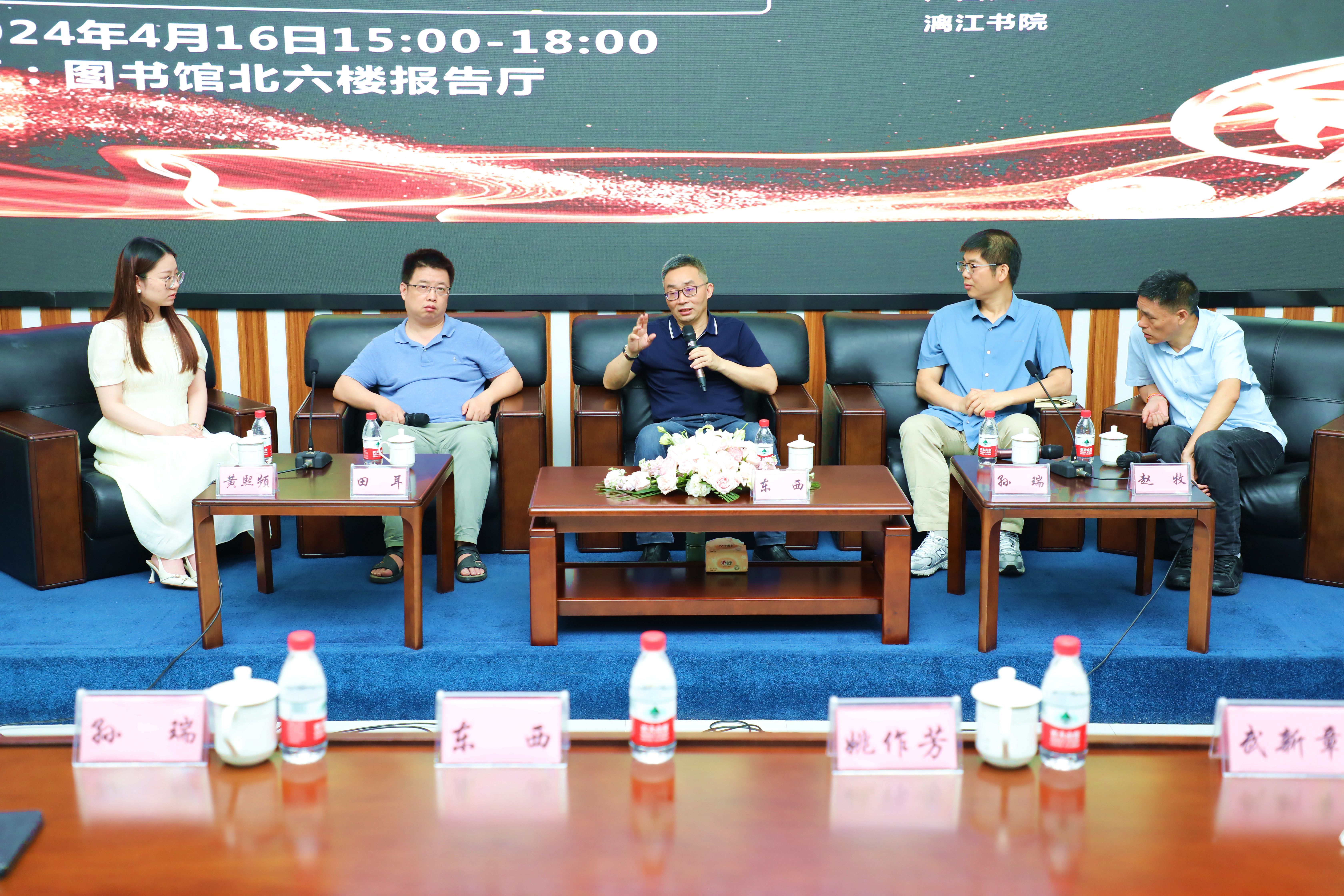 东西老师结合自身丰富的阅读、写作和工作经验,用生动鲜活的语言分享了其创作心得、读书方法,赢得了阵阵热烈掌声。在互动交流环节,东西老师和孙瑞部长、田耳老师、赵牧老师、黄熙频同学分别就文学创作、文学与文化自信、文学与文化走出去等话题与听众进行深入探讨,仔细回答了听众读者提出的问题。