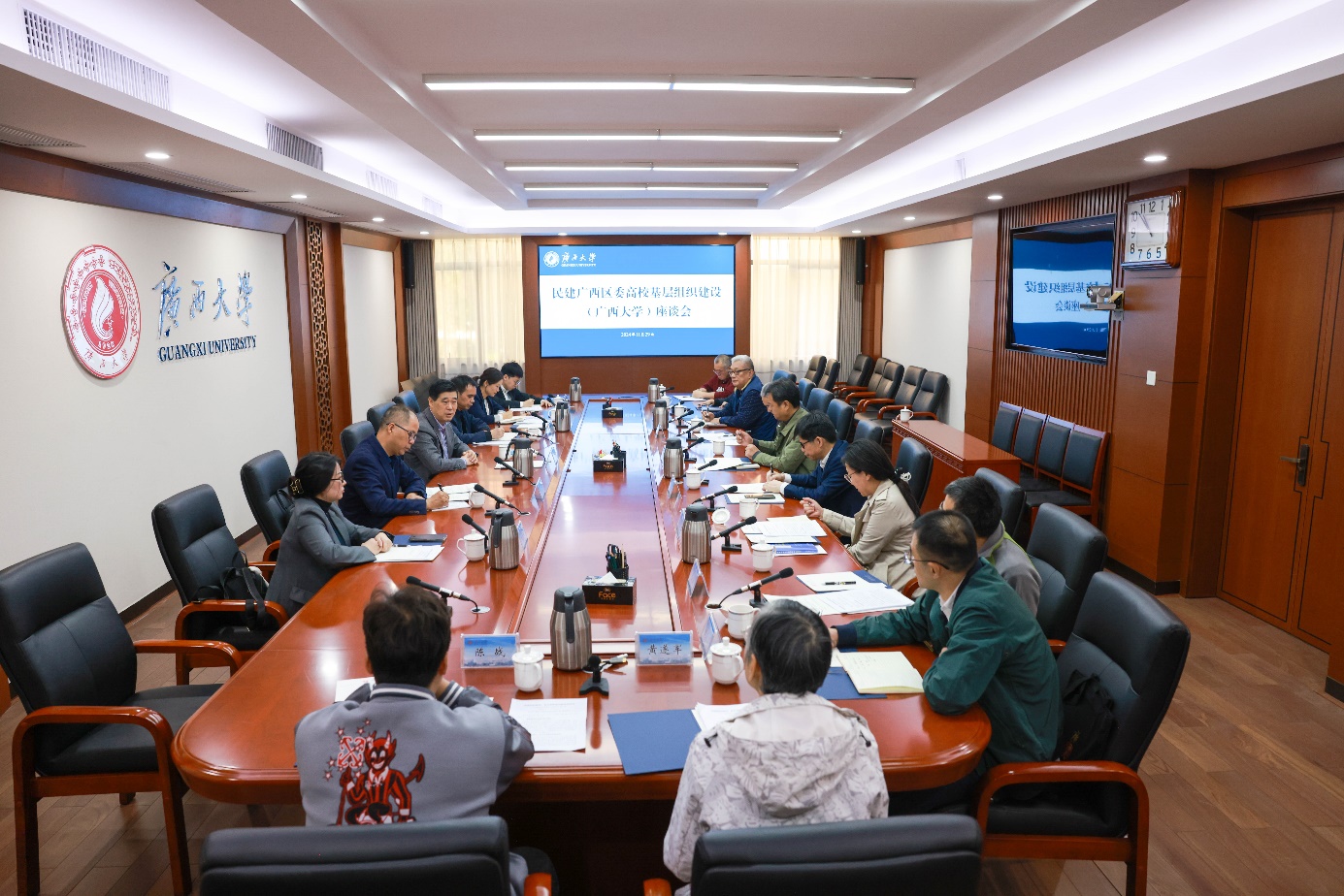民建广西壮族自治区委员会秘书长陈竞宇、宣传部部长陈卫东等参加调研,校党委常委、校长助理、统战部部长姚作芳,统战部副部长閤明勇全程陪同调研。
