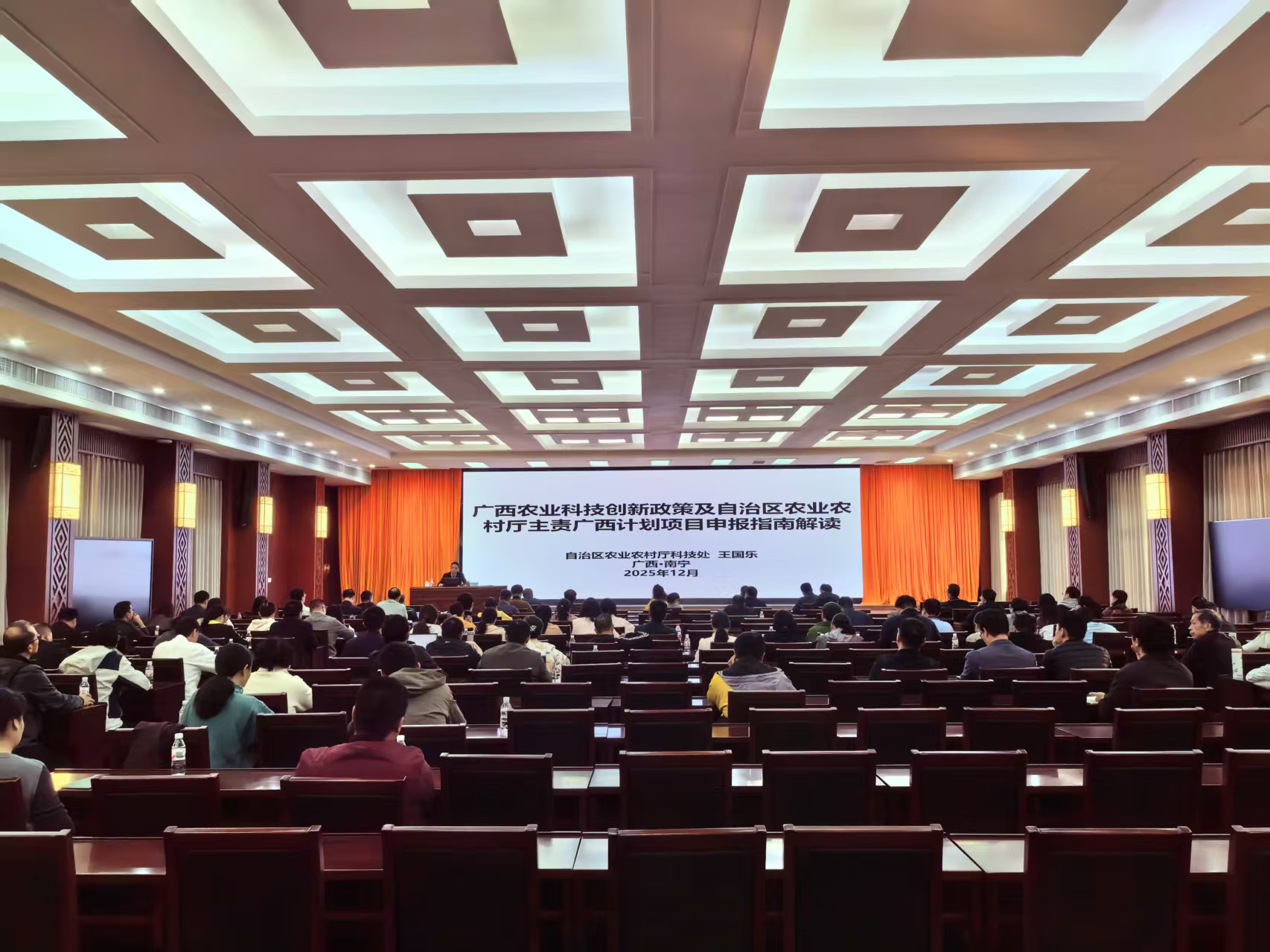 为助力我校科研人员精准把握农业科技项目申报方向,12月3日,党委统战部联合科研院开展“同心大讲堂”专题活动,自治区农业农村厅科技处副处长王国乐应邀作报告。王国乐系统解读了广西农业科技政策最新动向,重点围绕自治区农业农村厅主管的科技计划项目简介、申报指南解读、材料规范及注意事项进行实操指导,助力科研人员提升申报质量与效率。