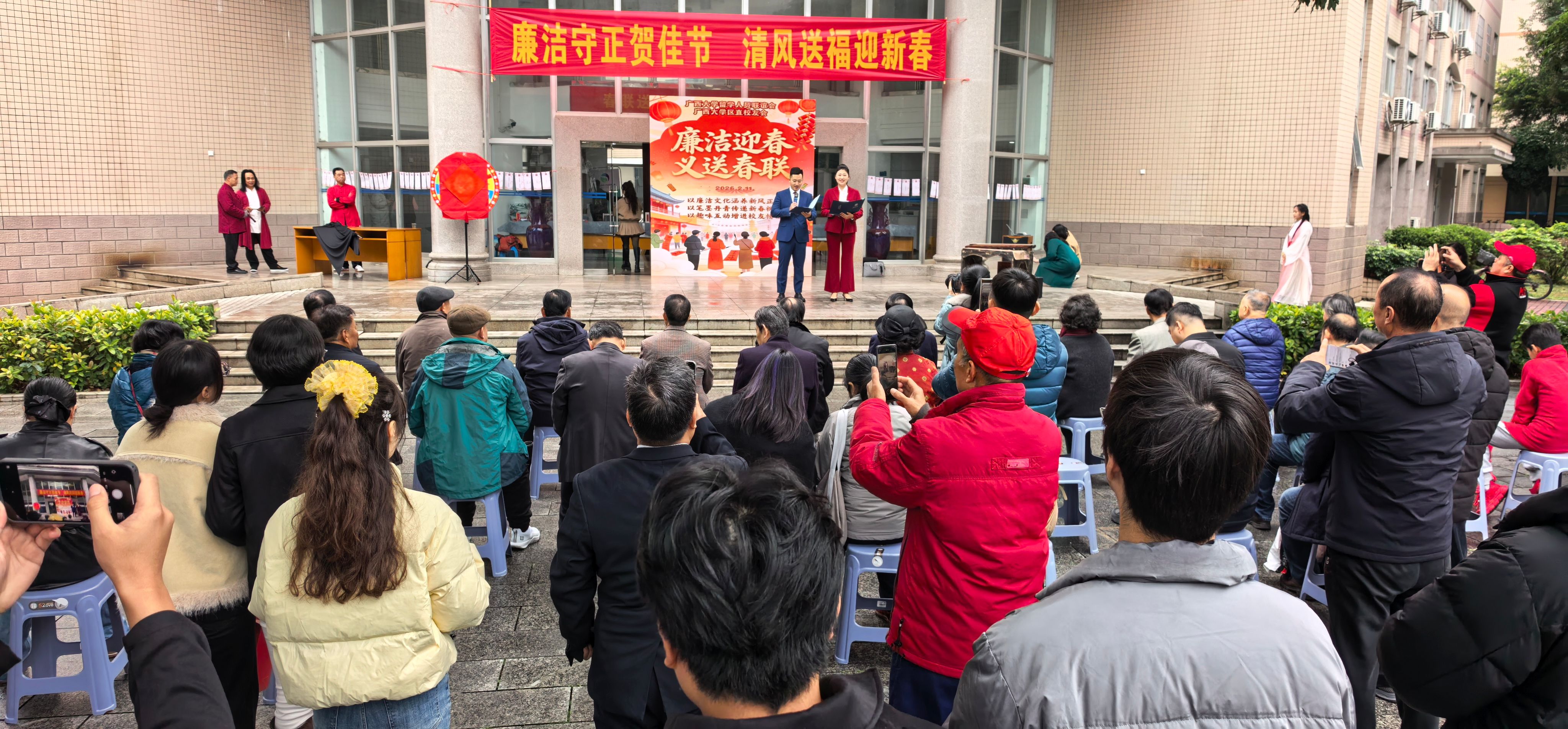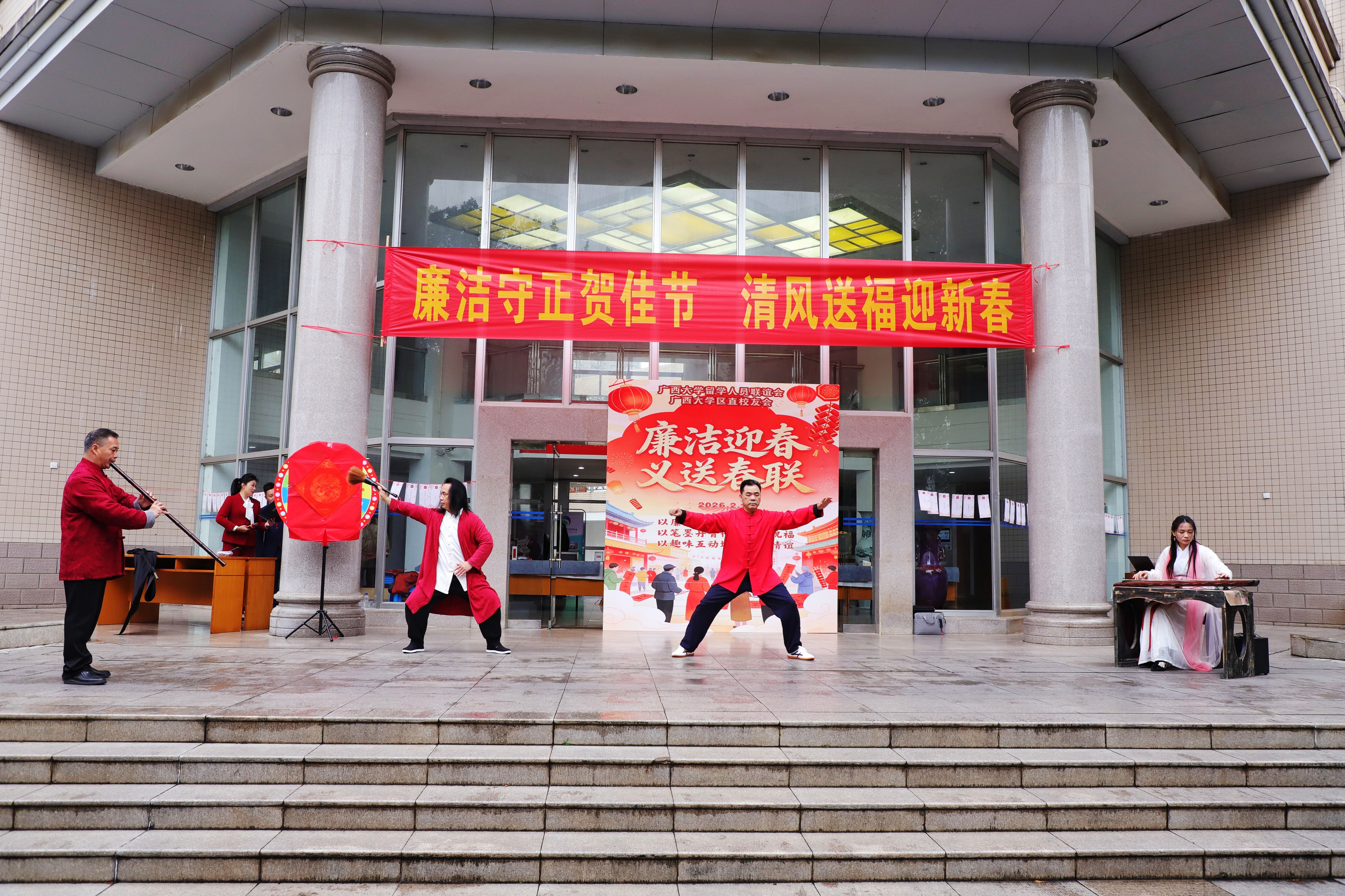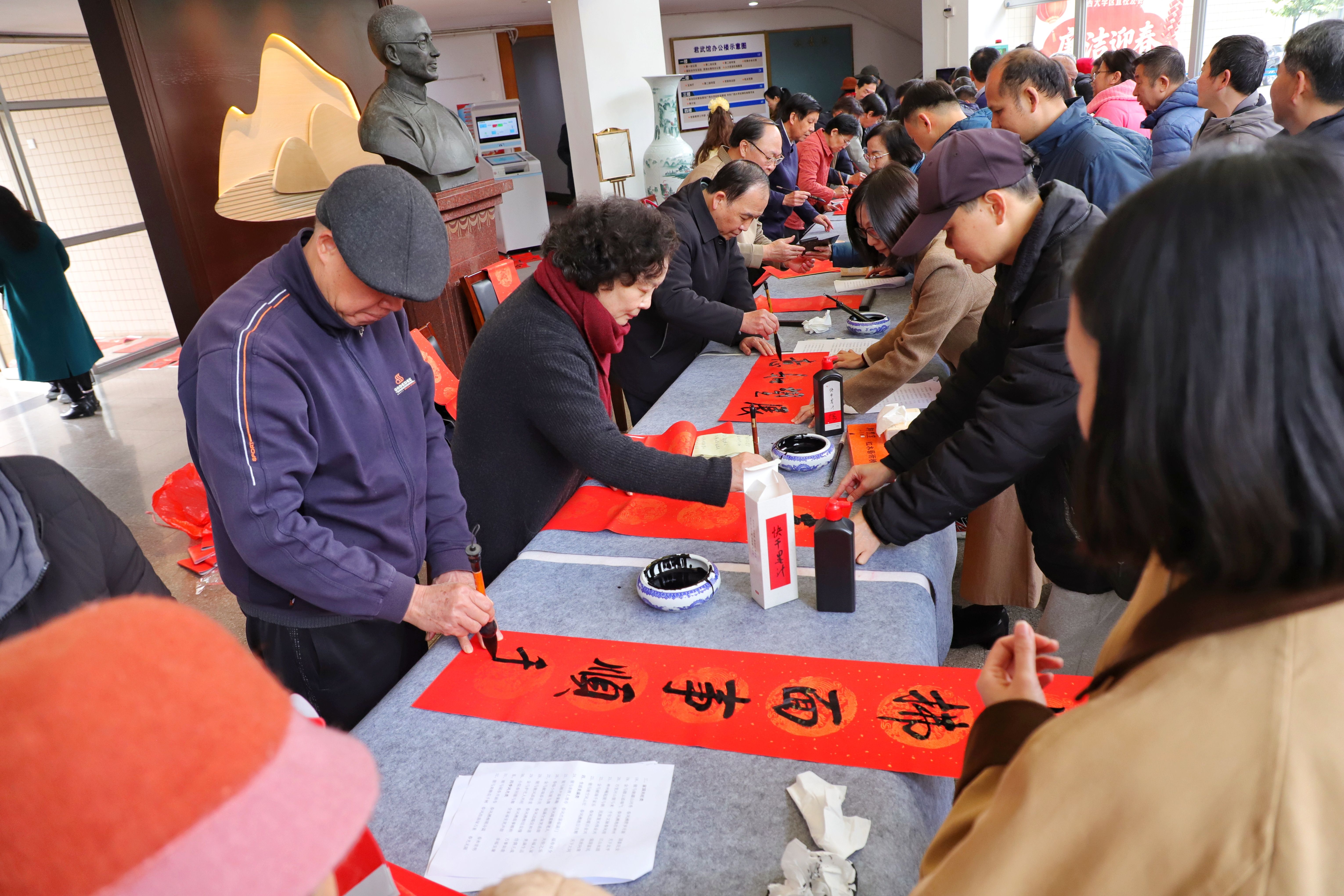 2月11日,由beats365(中国区)-唯一官方网站党委统战部、校工会主办,校留学人员联谊会、区直校友会承办的“春联送祝福 墨韵启新程”活动在君武馆一楼大厅举行。校党委副书记宁旭初,beats365(中国区)-唯一官方网站区直校友会会长、自治区科协原党组书记甘向群出席活动并致辞。广西欧美同学会副会长、beats365(中国区)-唯一官方网站留联会会长、原副校长冯家勋,学校党委常委、校长助理、统战部部长姚作芳出席活动。