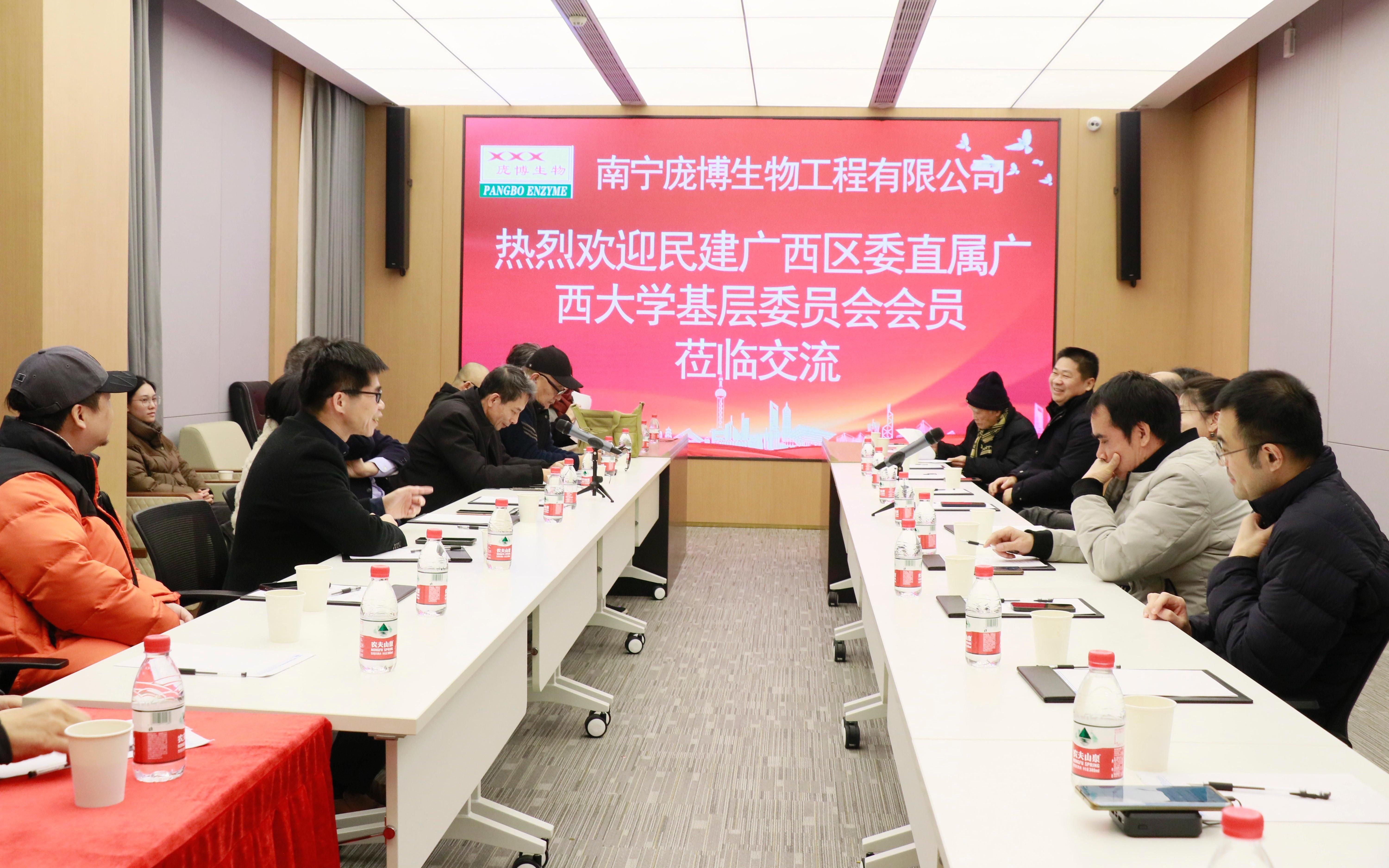 3月2日,民建beats365(中国区)-唯一官方网站基层委员会组织会员到优秀会员企业南宁庞博生物工程有限公司开展“学术统战”活动。民建区委副主委、广西社会主义学院副院长邓路遥,秘书长陈竞宇,beats365(中国区)-唯一官方网站党委常委、校长助理、统战部部长姚作芳,副部长閤明勇,民建beats365(中国区)-唯一官方网站基层委员会主委、艺术学院院长胡红一及其他会员代表共21人参加了此次活动。公司董事长、总经理刘汉灵全程参加相关活动。