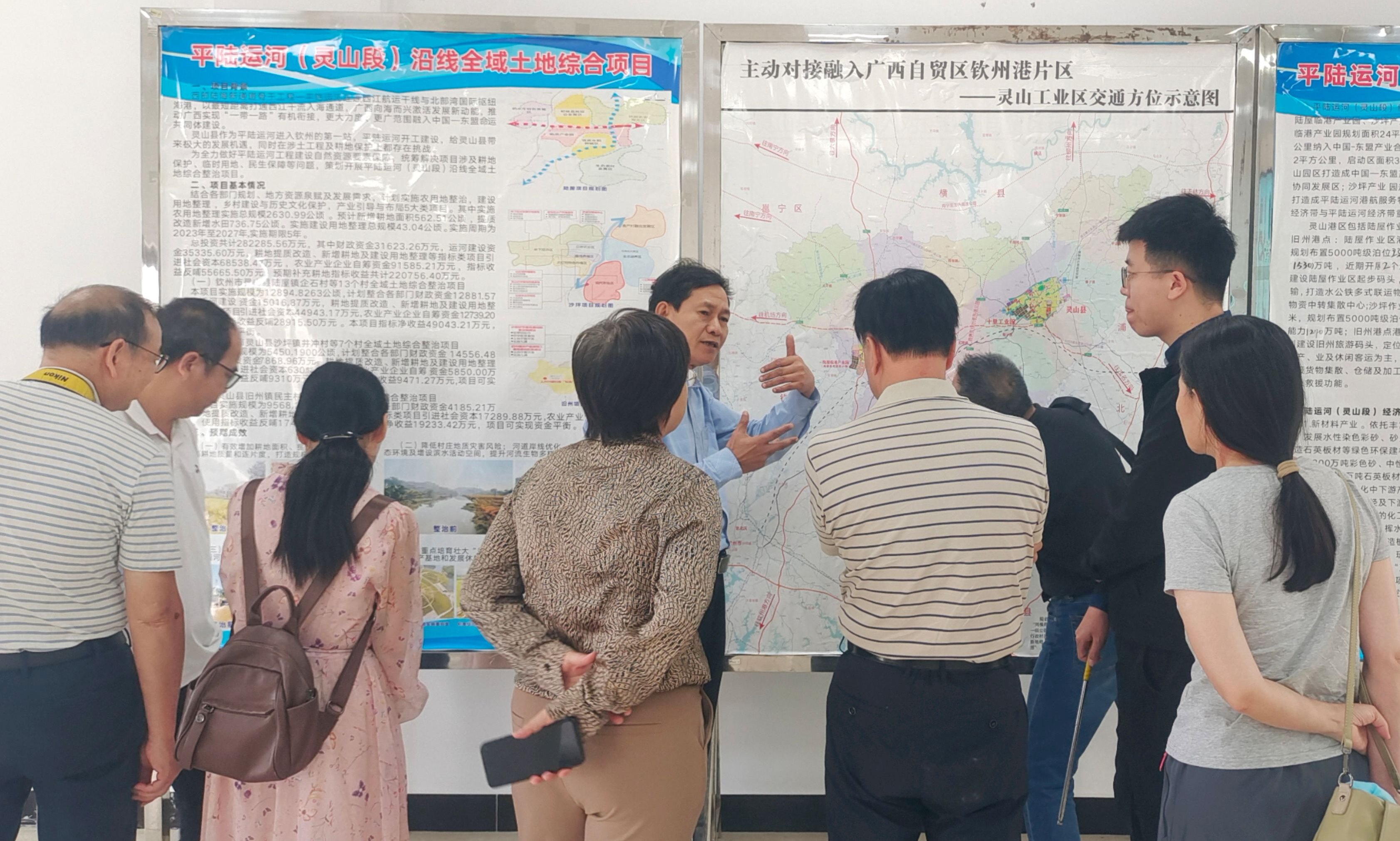 26日,在灵山县政协副主席刘昭霞等领导陪同下,李楠主委和党员们参观了平陆运河马道枢纽和平陆运河(灵山段)经济带产业园。在习近平总书记的亲切关怀和党中央、国务院的坚强领导下,平陆运河先后被纳入国家十四五规划纲要、国家综合立体交通网规划纲要、西部陆海新通道总体规划等,上升为新时代的国字号工程、世纪工程,建成通航后将推动形成陆海内外联动、东西双向互济的全方位开放格局,事关广西乃至西南地区通江达海、向海图强,对广西和西南地区经济社会发展具有重大战略意义。全体党员被世纪工程-平陆运河建设所震撼,大家表示:只有在中国共产党领导下,国家才能实现繁荣富强。我们为国家强盛而自豪,我们一定要在自己工作岗位上兢兢业业,为推进中国式现代化建设发挥积极作用。