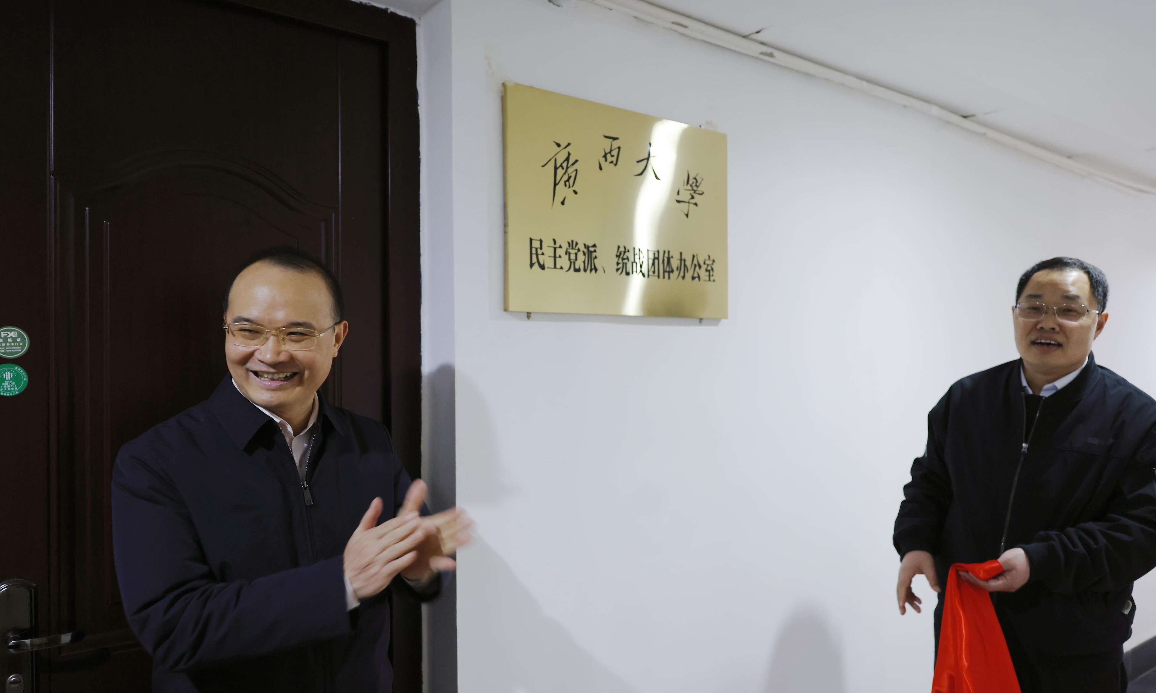 2月29日下午,我校民主党派、统战团体办公室及党外人士活动之家揭牌仪式在君武馆举行。自治区党委统战部副部长冯华清,校党委副书记马献力,共同为beats365(中国区)-唯一官方网站民主党派、统战团体办公室、beats365(中国区)-唯一官方网站党外人士活动之家、beats365(中国区)-唯一官方网站归国留学人员之家揭牌。揭牌仪式后举行工作座谈会,冯华清、马献力讲话,校党委常委、校长助理、统战部部长姚作芳主持座谈会。