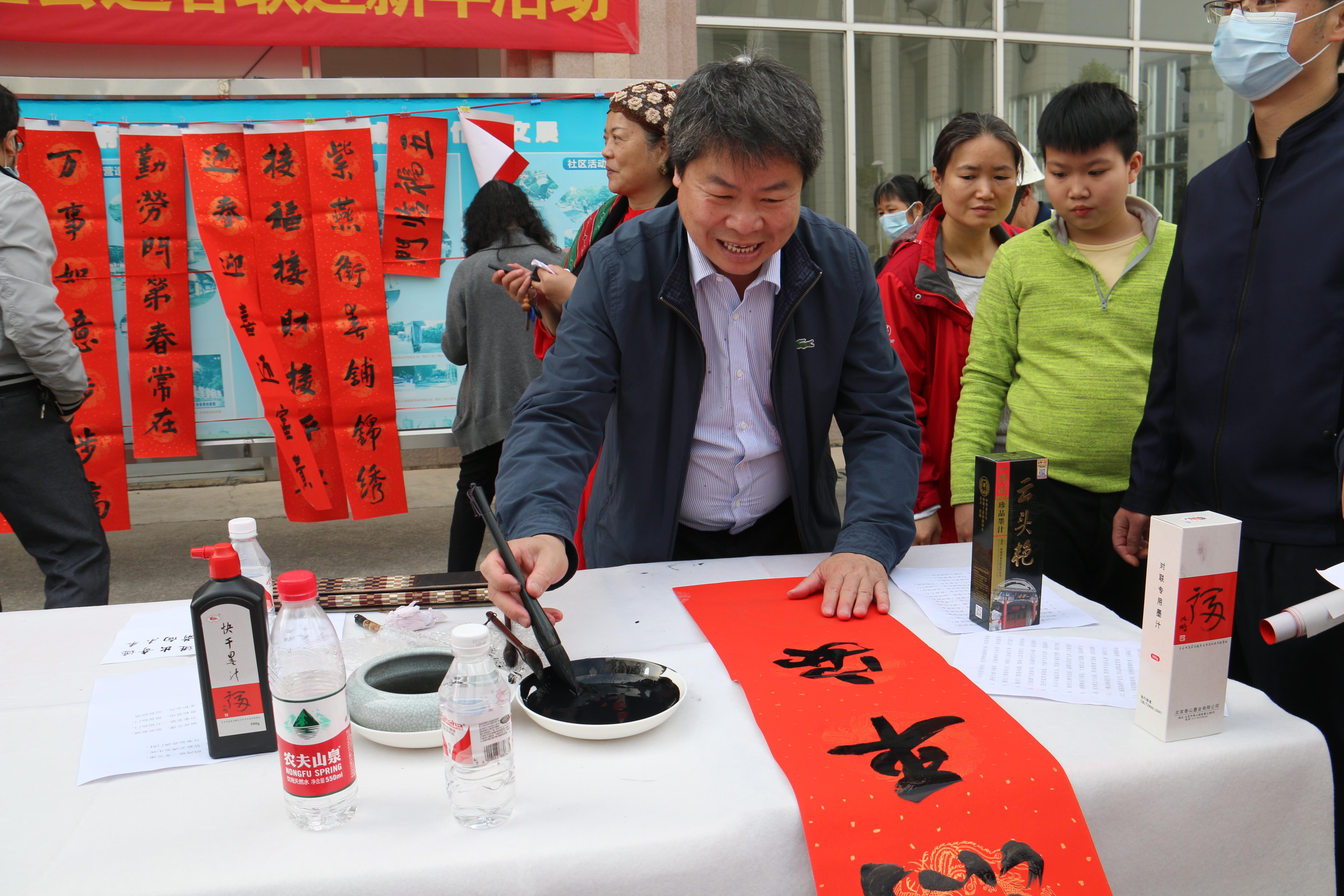 整个活动现场热闹非凡,纸墨飘香,洋溢着浓浓的年味。前来领取春联的教职员工兴致勃勃地观看书法家们写春联,拿到春联的教职员工喜笑颜开。