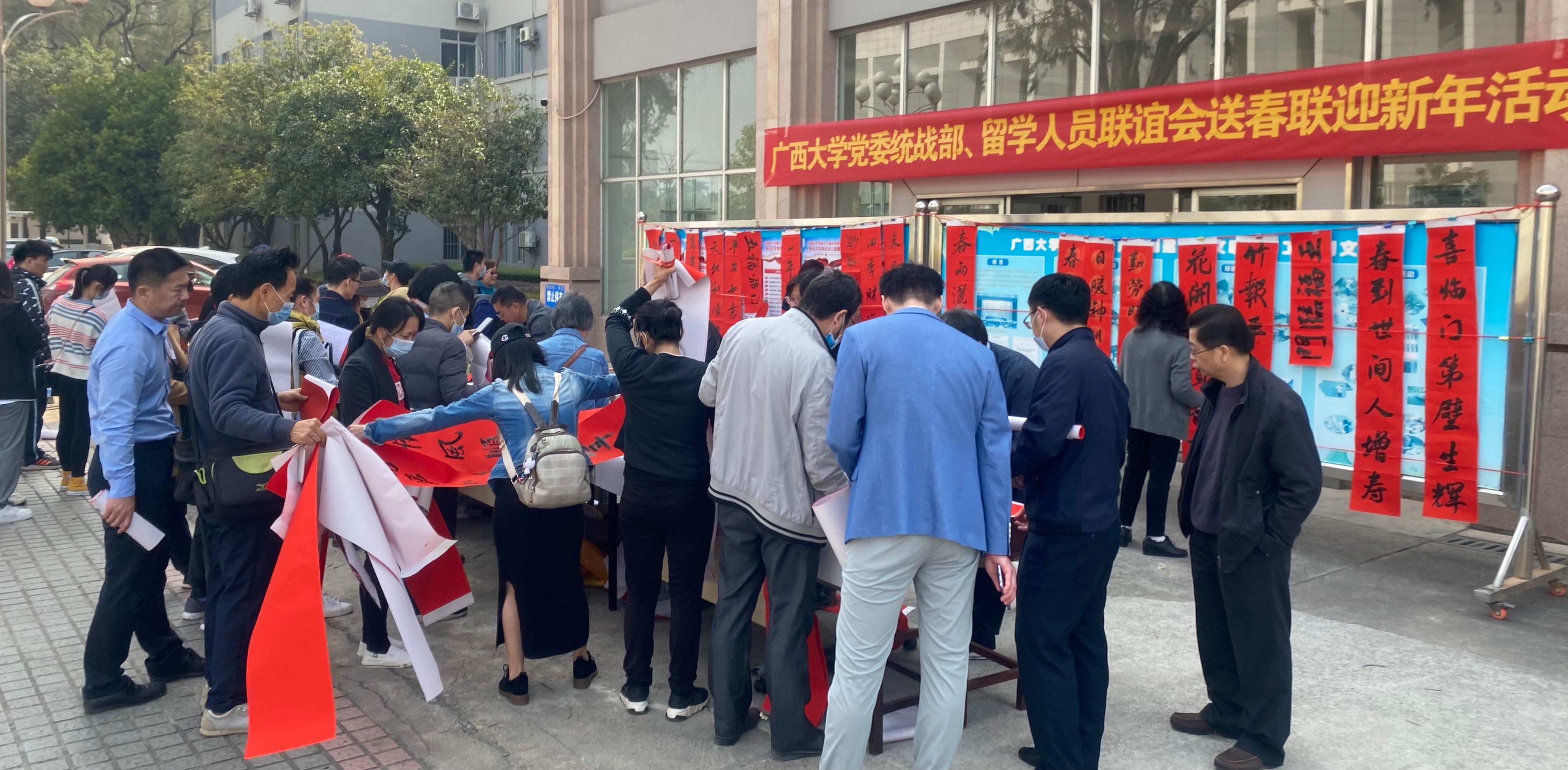 艺术学院帅民风教授、张明学教授、郑小平博士、文学院韦明刚老师以及退休教师翟旭明、王淮等书法家和书法爱好者们挥毫泼墨,将一幅幅饱含新春祝福的对联送给在校的教职员工。