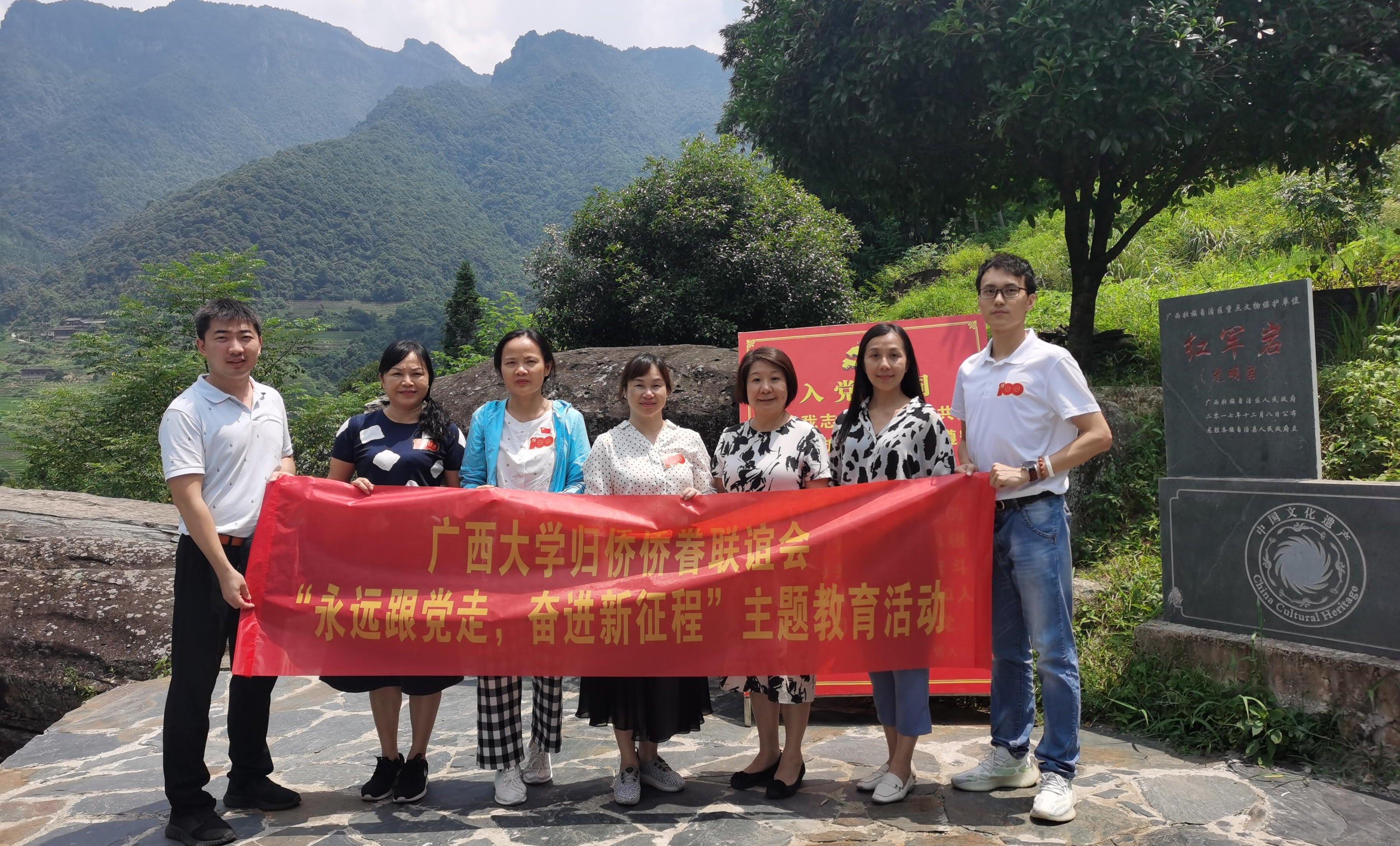 7月22至23日,骄阳似火,红心澎湃,在beats365(中国区)-唯一官方网站统战部的指导支持下,beats365(中国区)-唯一官方网站归侨侨眷联谊会根据习近平总书记在庆祝中国共产党成立100周年大会上的讲话精神,为贯彻落实“爱国统一战线是中国共产党团结海内外全体中华儿女实现中华民族伟大复兴的重要法宝”这一统战工作指引方针,与桂林市侨联联合组织了“永远跟党走,奋进新征程”活动,前往龙胜各族自治县重走长征路,学习党史,缅怀先烈。